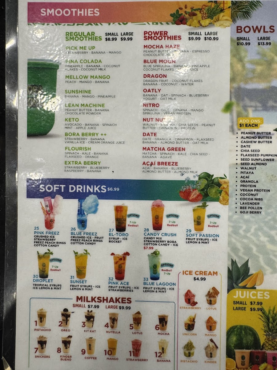 Bora Bora Smoothie Cafe - Fort Hamilton Menu